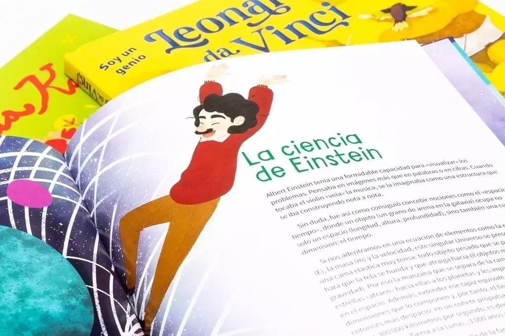 ¿Cómo un niño testarudo se convierte en el científico más famoso del mundo? Sencillo: nunca deja de buscar el por qué de las cosas, como hacen todos los niños. Entre variables misteriosas, incógnitas, paréntesis y fracciones complicadas, las respuestas llegarán en el espacio y el tiempo, montadas en un rayo de luz. ¡Palabra de genio!