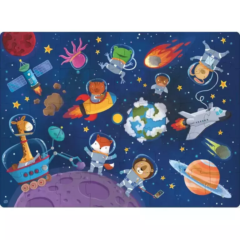 ¡El espacio esconde muchos misterios! Hojea el librito, construye el puzzle y aprende sobre los elementos que caracterizan el universo que rodea la Tierra.Una caja adornada con detalles iridiscentes contiene un libro de 10 páginas, un puzzle de 40 piezas y 10 figuras espaciales para montar y colocar en el puzzle, para aprender a reconocer colores, formas, números y a asociar palabras..