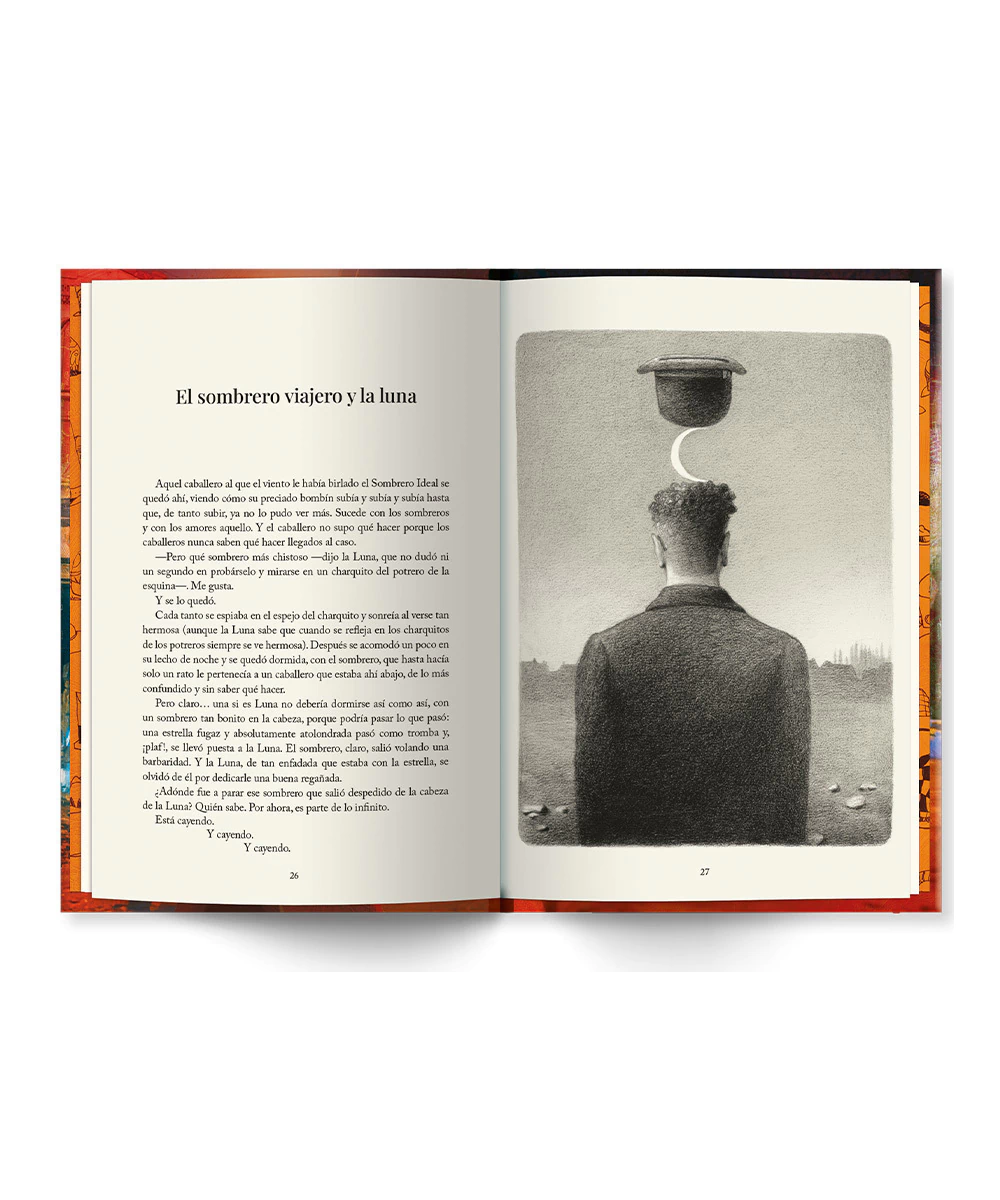 Te preguntarás por qué existe un libro sobre sombreros. Lo especial está en todo lo que es posible guardar dentro de ese círculo rodeado por un alero. Hay espacio de sobra para esconder allí lo que quieras (y algunas cosas que no quieras también). Por eso los magos, las brujas y los abuelos usan sombreros: necesitan algo cómodo donde guardar todo lo que llevan dentro de sus cabezas. ¿Vos ya encontraste tu sombrero? ¿Por qué no pasás al interior de este libro? Hay tantos que, seguro, alguno es ideal para vos.